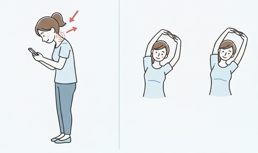 次の一歩として: まずはご自身の「作業中の姿勢」を写真に撮って確認してみませんか?顎が前に出ているようであれば、モニターの高さを上げるだけで劇的に改善する可能性があります。不安が強い場合は、一度整形外科にてレントゲン検査を受けることをお勧めします。